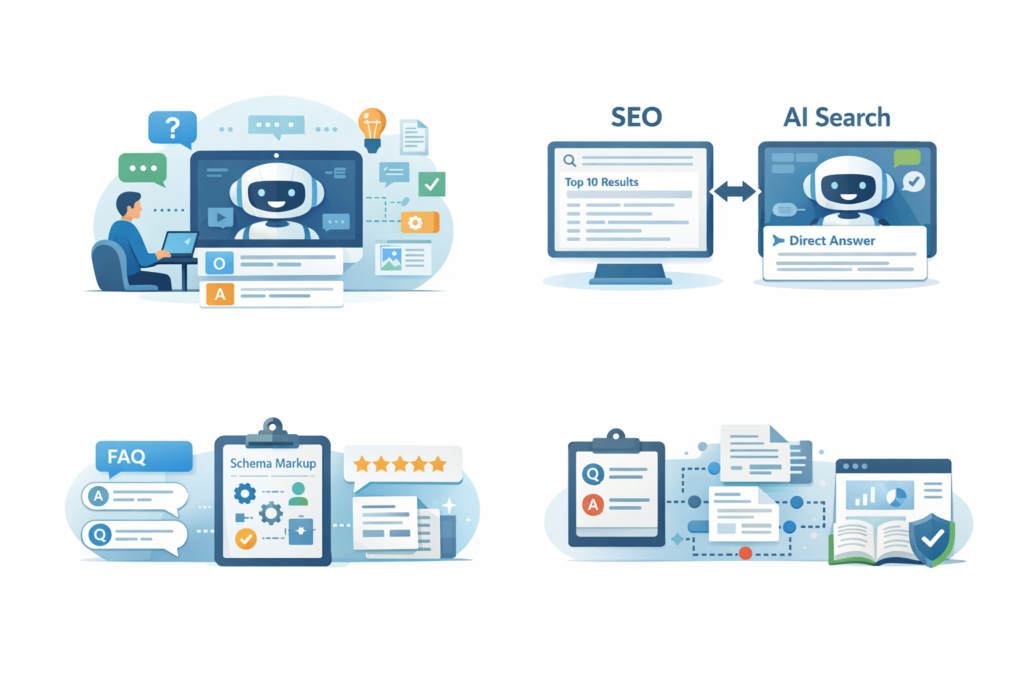 AIが情報を理解・引用・回答生成しやすい形でコンテンツを最適化する考え方です。